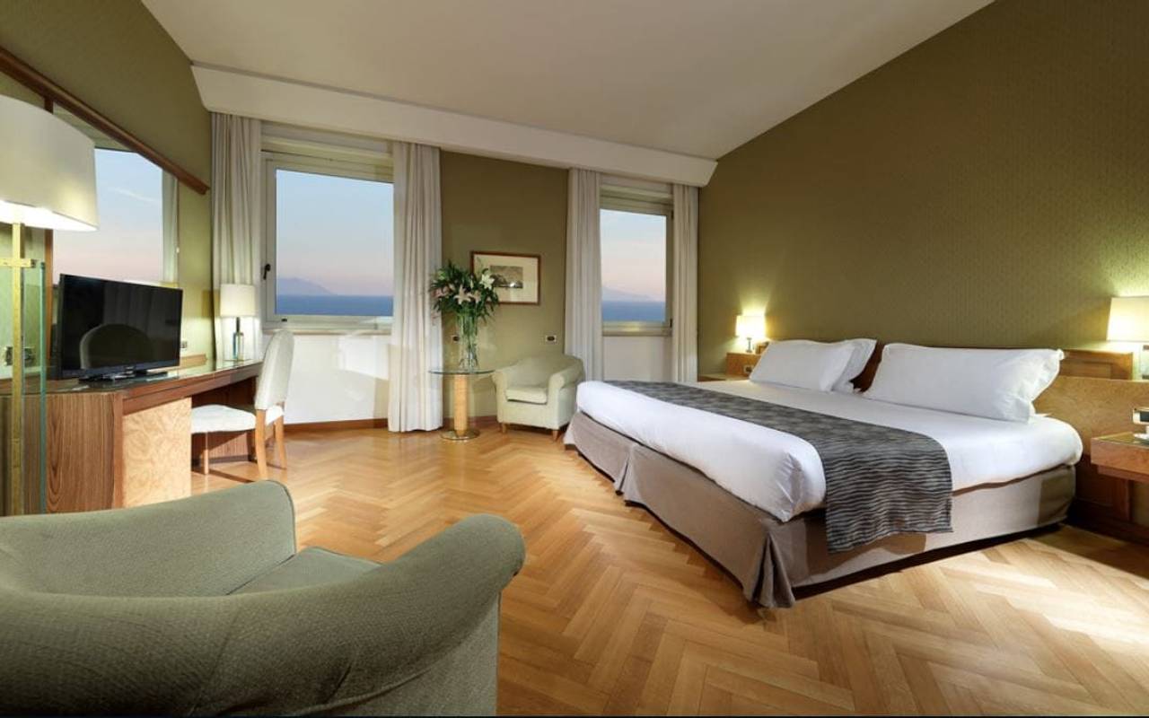 Eine unglaubliche Aussicht auf die Bucht von Neapel bietet sich von der hoteleigenen Sonnenterrasse und vom Restaurant „Le Pavillon“, wo man auch die mediterrane Küche genießen kann. Der Strand ist rund 20 Gehminuten vom Hotel entfernt. Fitnesscenter ist im Hotel vorhanden. Die Gästezimmer sind klassisch-modern eingerichtet und bieten Bergblick (Guest Room, 15qm) oder Blick auf das Meer bzw. die Bucht von Neapel (Guest Room, 20qm) .