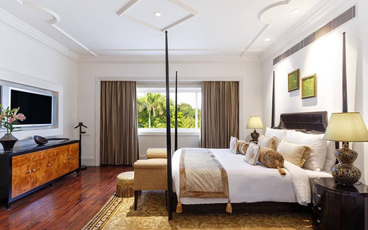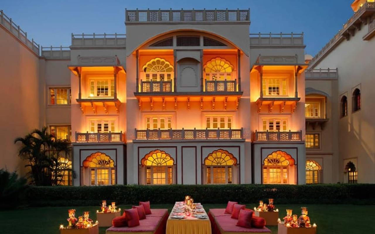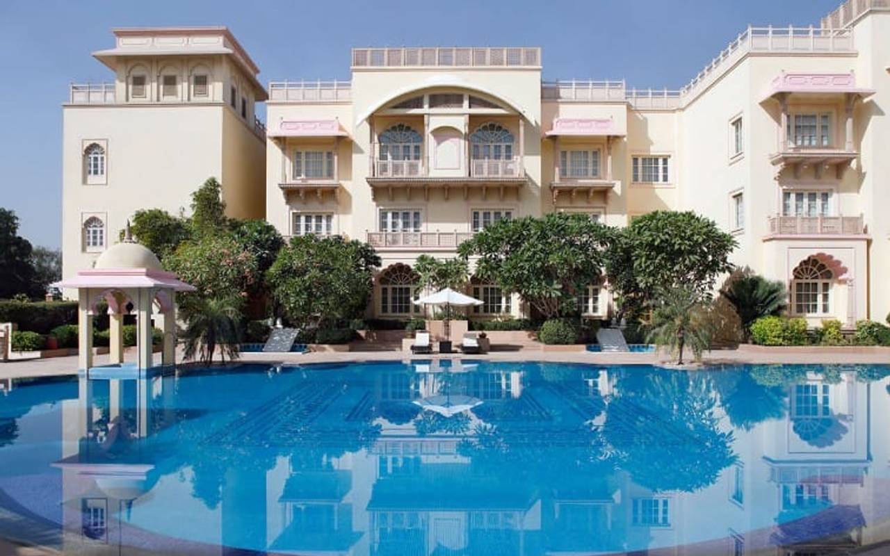 Das luxuriöse Taj Hari Mahal ist einem königlichen Palast aus dem 14. Jahrhundert nachempfunden und befindet sich in einem über 2 Hektar großen Landschaftsgarten.