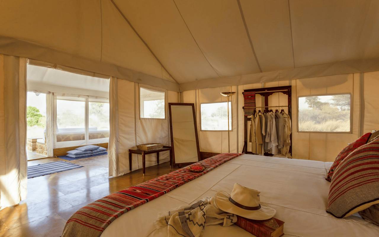 Das Luxuscamp steht auf einem 100 Hektar großen Privatgrundstück mit einheimischen Wüstenpflanzen, inspiriert von den historischen königlichen Karawanen von Rajputana. Sie wohnen in einem luxuriösen Zelt, das über eine eigene Terrasse und ein stilvolles Interieur verfügt.