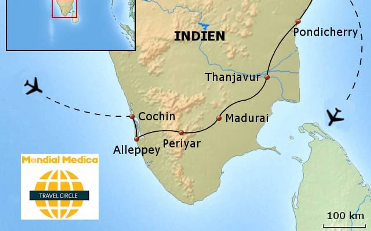 Reiseroute (Kochi - Alleppey - Periyar - Madurai - Thanjavur - Pondicherry - Mahabalipuram - Chennai)